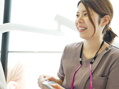 ドクターやスタッフも全員当院のホワイトニングを経験しているので、一時的とはいえ痛みの程度によって続けるとどの程度しみるのか、現時点でどのくらい白くなるのか、などのアドバイスもできます。